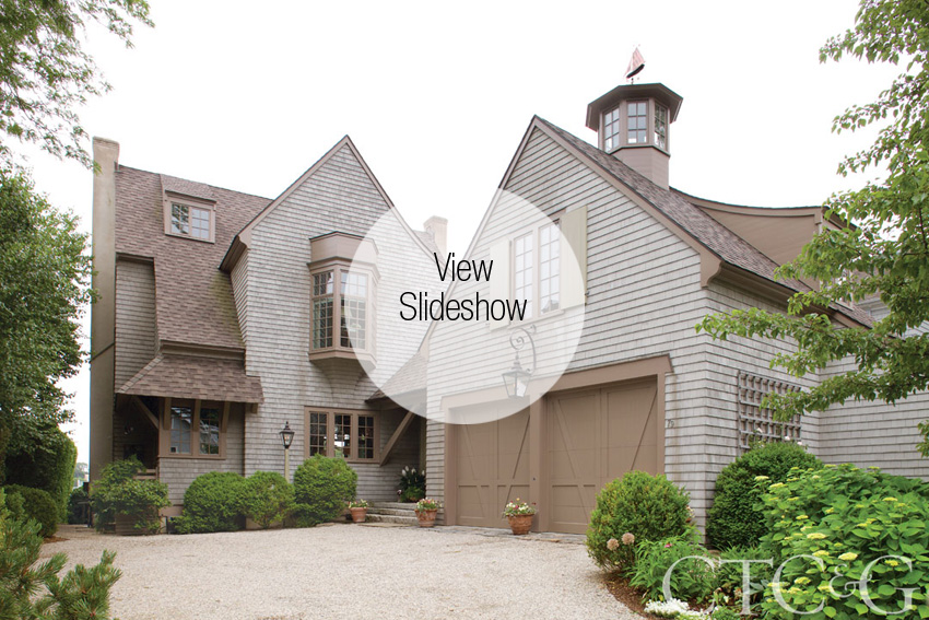 A quirky roofline means the house isn’t all about the entrance and lends a friendly, almost haphazard quality. Parts of the structure appear to be tacked on. It’s this intentional romantic nature of the home that makes it so approachable. “I came into this project with no pretense—we were building in a fishing village,” notes Tankersley. “I built what the town needed and not what someone from New York City would need.” Hurwitt adds, “Every Connecticut house looks just like every other Connecticut house. I knew they would give me something individual.”
