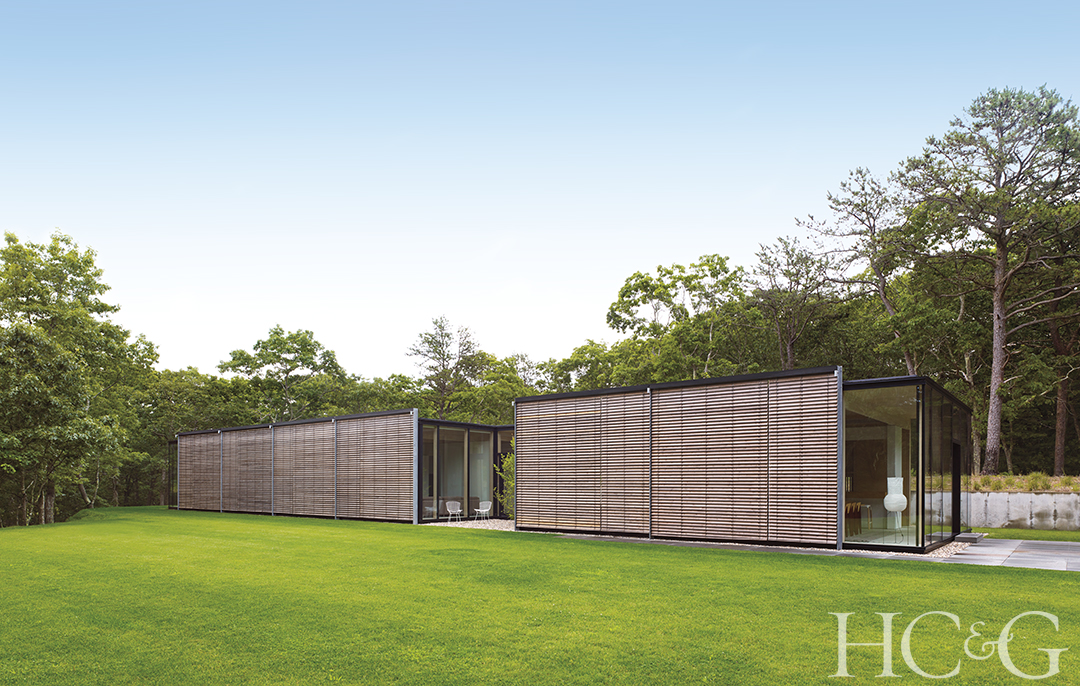 A native of France who has lived in the States for 20 years, Engelking is a mid-20th-century furniture collector who just happens to have a day job at Richard Meier & Partners Architects, the renowned New York–based firm. Anything but energy efficient, all-glass houses like the one he designed for his family mostly went out of vogue during the oil crisis of the 1970s. But Engelking’s modern-day iteration in Amagansett boasts a super-insulated roof that generates enough energy savings to offset the vast expanses of windows, which are framed in wood that’s treated to prevent rot and discourage insects, in addition to providing further insulation. The glass is self-cleaning, with a nonstick outer surface that requires only an occasional hosing off.