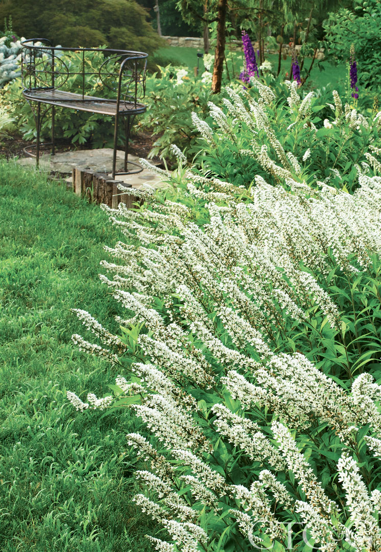 Gooseneck loosestrife—known for being a somewhat aggressive grower—works well as a barrier between garden areas.