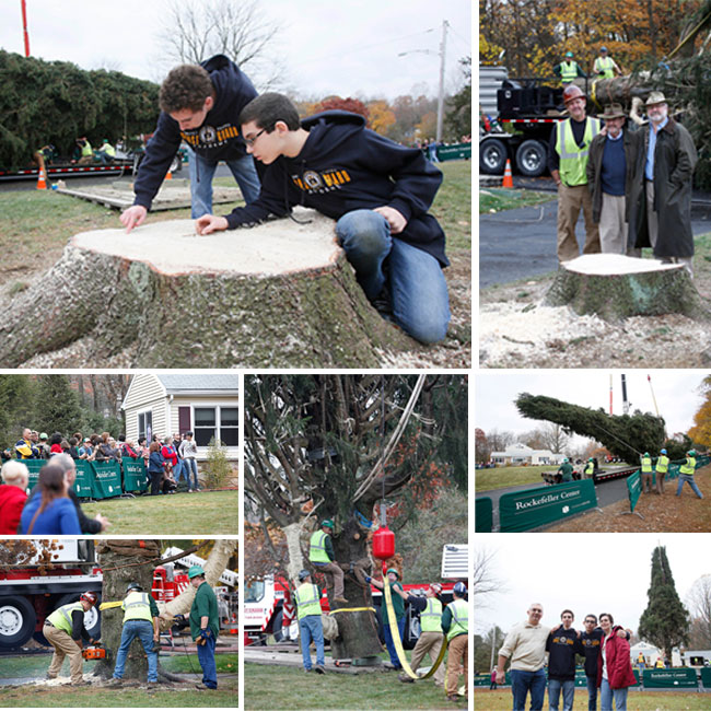Neighbors look on as the 76-foot tall Norway spruce from Shelton, CT., is cut down for the 2013 Rockefeller Christmas Tree, Thursday, Nov. 7, 2013. Stuart Ramson/Insider Images for Tishman Speyer