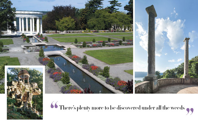 TT: The Walled Garden—called the Grecian garden by Untermyer and the Indo-Persian garden by Bosworth—was in the best shape when I arrived. The Temple of Love was visible but inaccessible, and the Vista Steps to the ancient Roman columns were still extant. And there’s plenty more to be discovered under all the weeds.