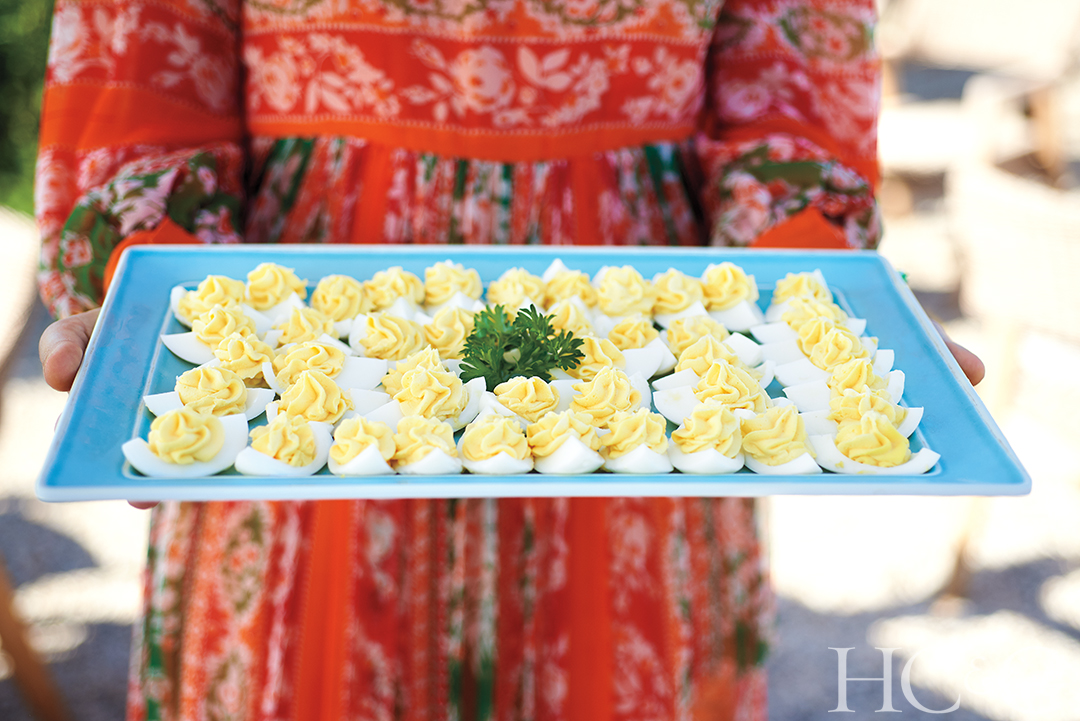 A decadent platter of deviled eggs.