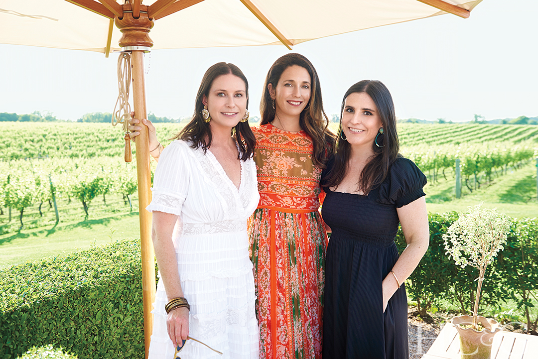 Lauren Thayer Weiss and her sister, Erin Dickson, flank Joey Wölffer at the wine stand’s kickoff cocktail party. “The redesign came about very organically,” recalls Wölffer. “We wanted to make the wine stand more special—it hadn’t always been our focus.” Adds Thayer Weiss: “It was a true collaboration, and we’re thrilled with the outcome!”