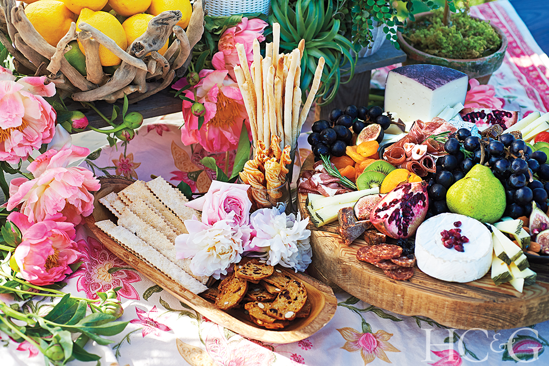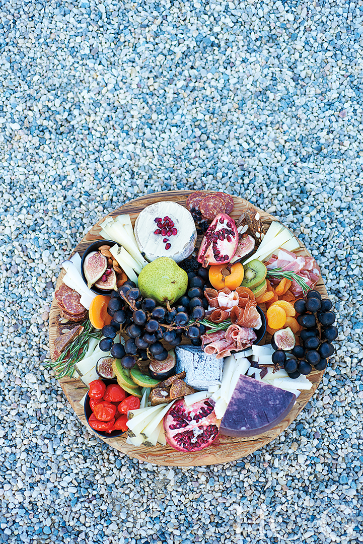 What better to serve with all that wine? Beautiful platters of cheese, fruit, and charcuterie.