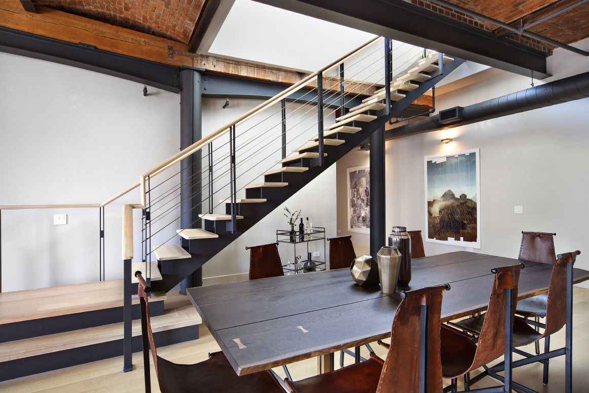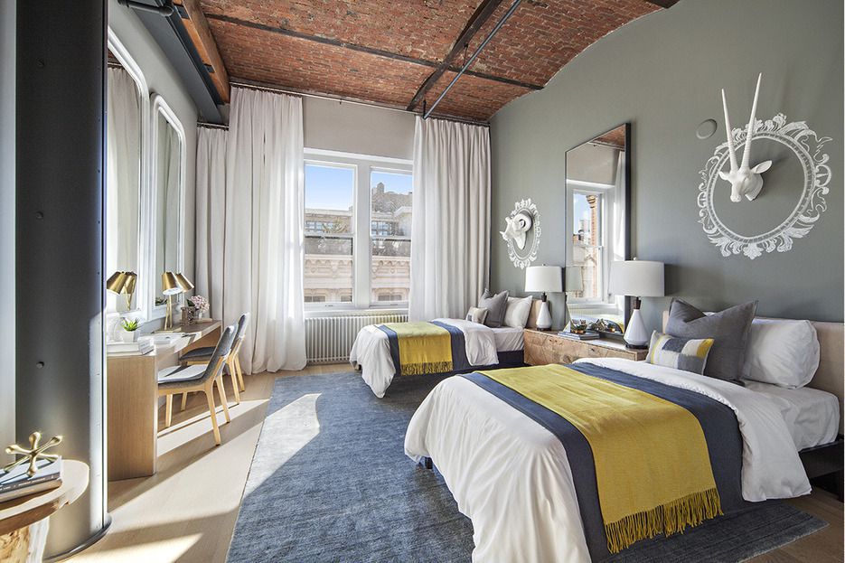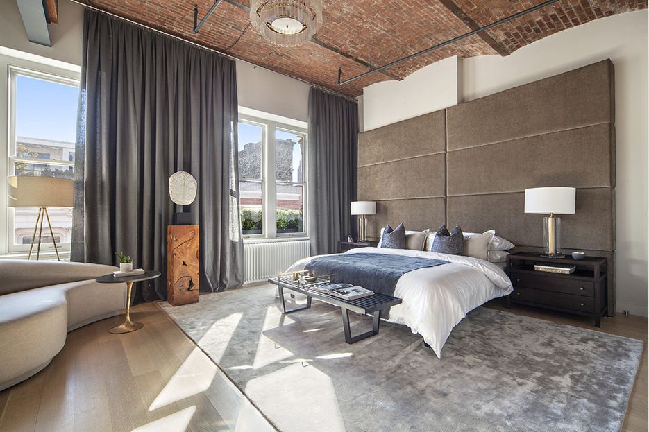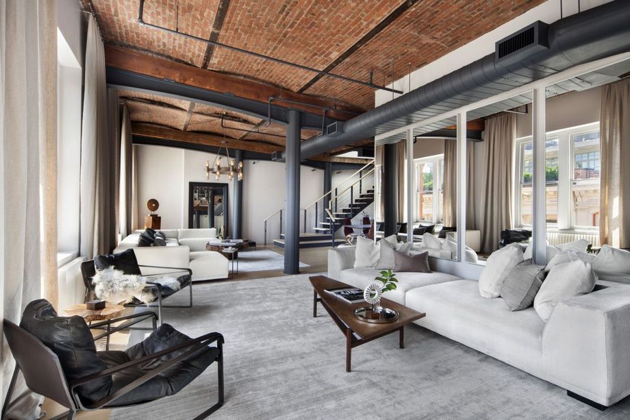Perched atop a circa-1877 building, the apartment, which used to be a silk-industry showroom, is brimming with historic charm while infusing modern luxuries like a chef’s kitchen and marble bathroom floors. Exposed ducting, barrel-vaulted brick ceilings, and both steel and wooden beams create an industrial and effortlessly stylish aesthetic throughout the unit.