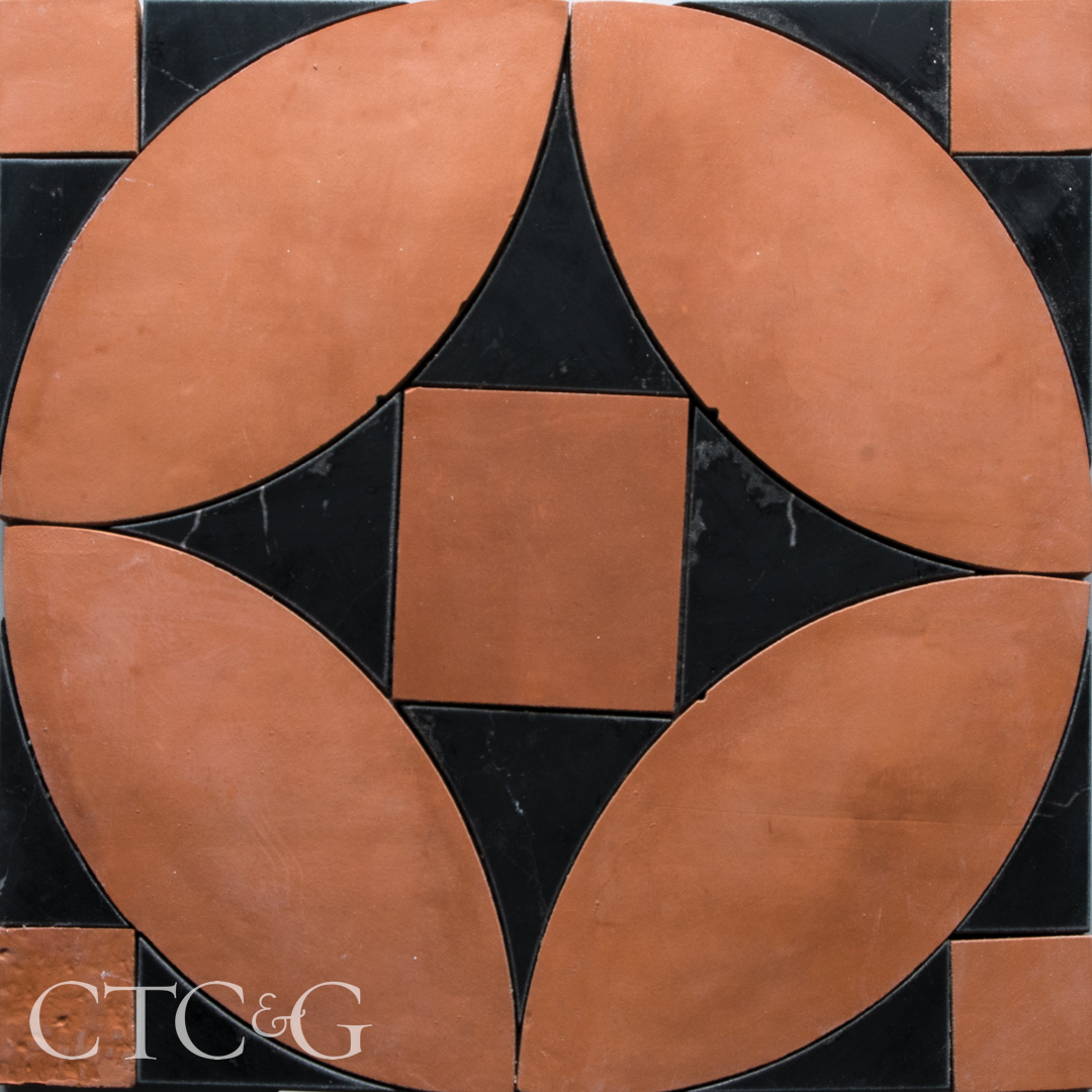 COUNTRY FLOORS’ black-honed, terracotta-honed Emna marble mosaic tile from the Tessa Mosaic Collection embodies earthy sophistication and versatility.