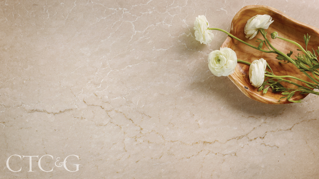 CAMBRIA’s new MonTaaj quartz has antique gold accents with beige and taupe layers, infusing modern luxury into any space. Available through Timeless Stone.