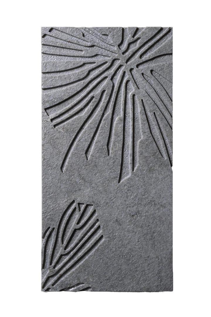 BORROWED EARTH’s Xylem mirrors the life-giving veins of the natural world. Available in eight stone colors; Grey Fantasy marble shown. Available through Laura Michaels Design.