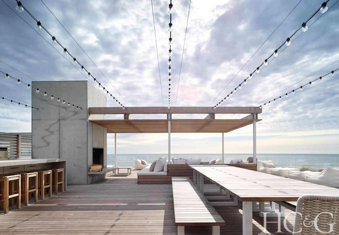 These Hamptons homeowners wanted to take in the ocean sights and sounds while cooking and entertaining so Stelle Lomont Rouhani Architects designed a deck with a retractable awning, affording shade from the sun when needed.
