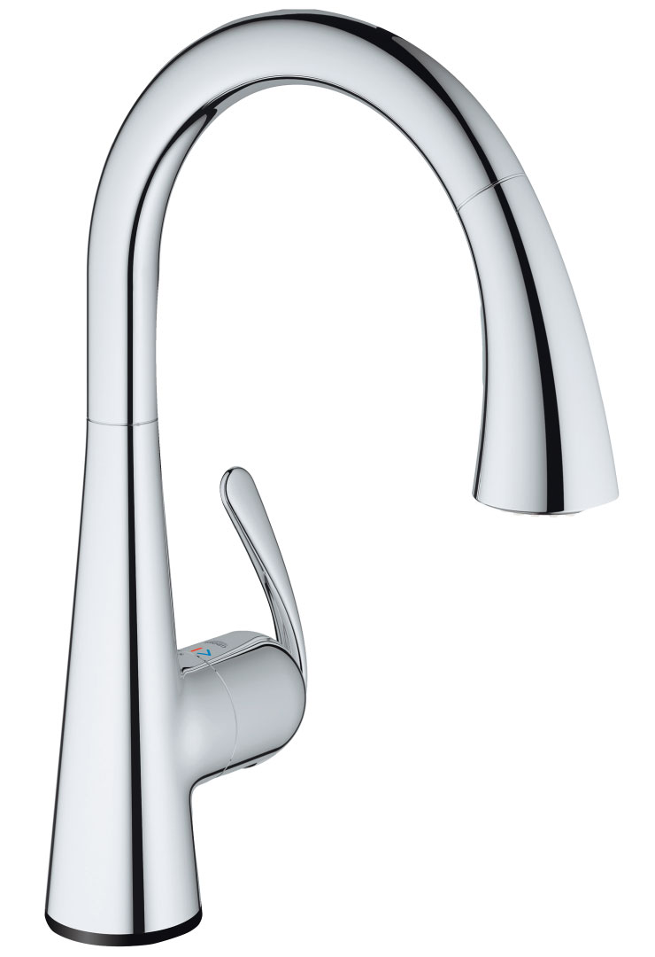 The Grohe Ladylux 3 Café touch faucet allows users to turn water flow off and on with the touch of a wrist or forearm—no dirty fingers or cross contamination here. Swivel spout and optional temperature control prevents scalding. Grohe.com/us, through Torrco, torrco.com.