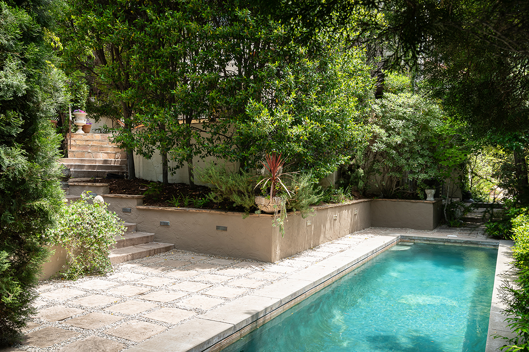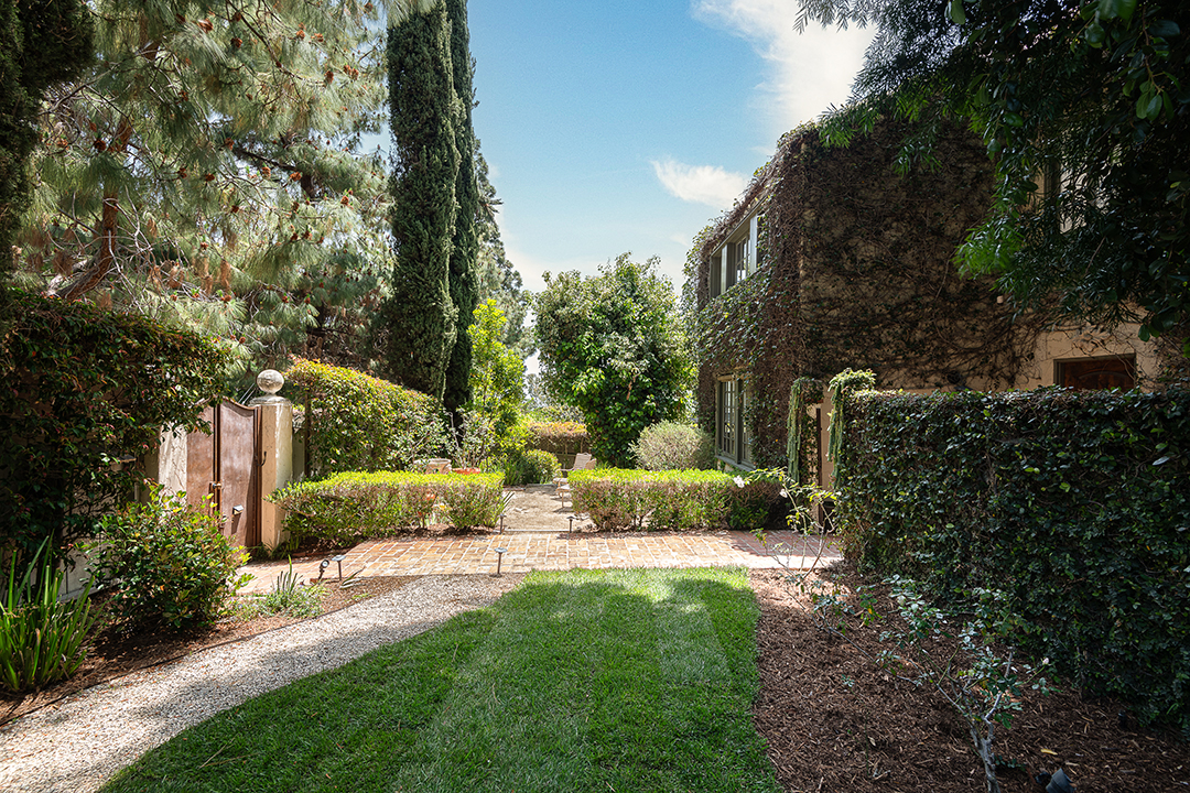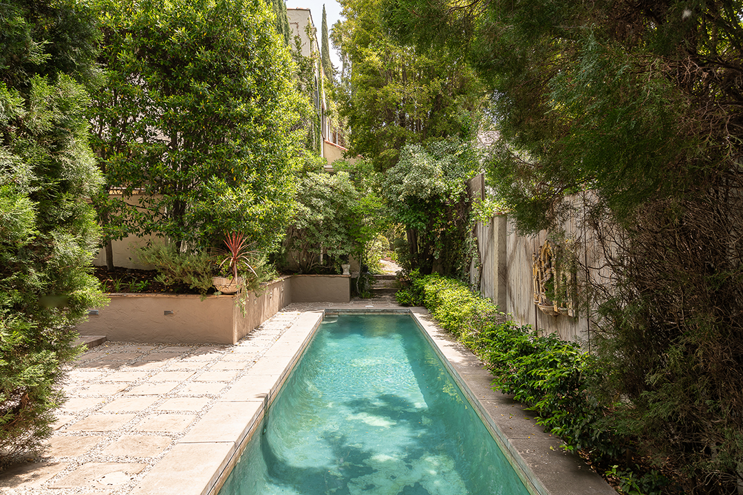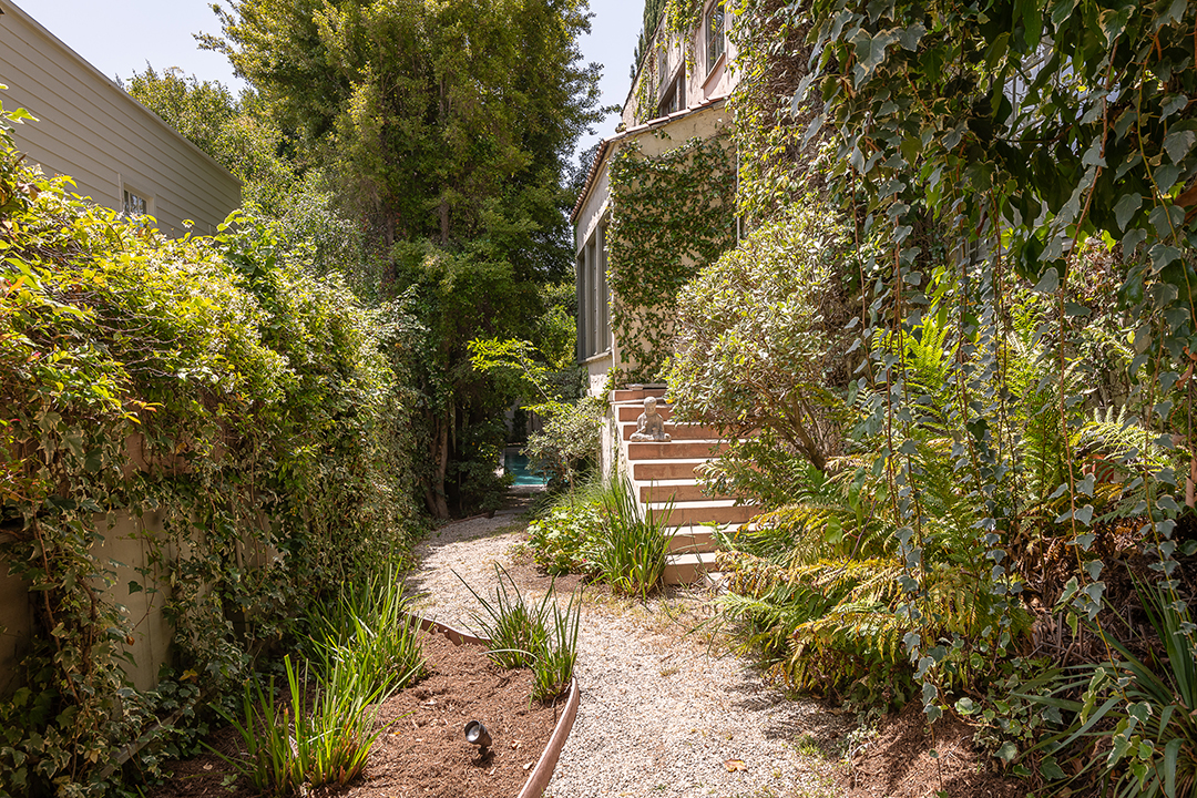 Arriving at 1757 N Gardner Street, there is an enchanting feel that pervades from the home’s ivy-covered entry through the airy interiors. Shining with original stained glass work and rich oak floors, the 3,400-square-foot home has good bones that were enhanced by a 2021 renovation. As you walk through, it’s fun to picture the liveliness the place might have seen in the Roaring 20s. The public spaces may have once been the scenes of get-togethers from Goldwyn’s movies or MGM founders. Meanwhile, the four bedrooms and three bedrooms function as relaxing sanctuaries. Of course, a California home wouldn’t be complete without a beautiful backyard, and this one even holds an original piece from the set of Cleopatra.