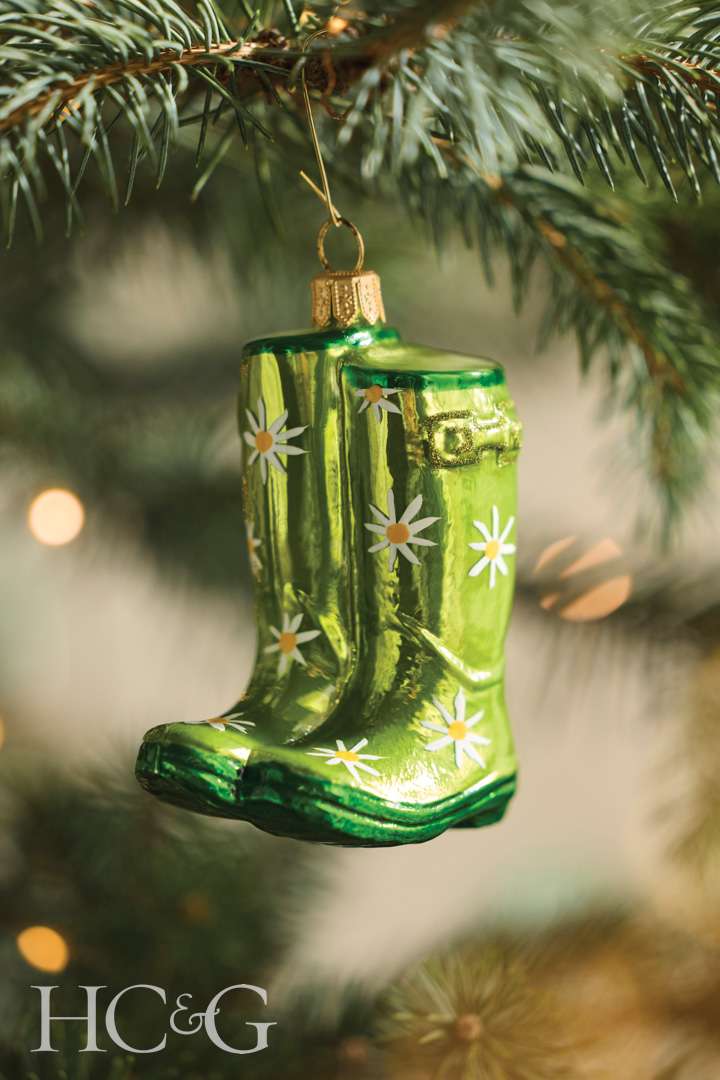 A shiny touch of whimsy, the hand-painted, blown-glass DAISY RAIN BOOT ORANMENT ($38) deserves pride of place on your favorite gardener’s holiday tree.