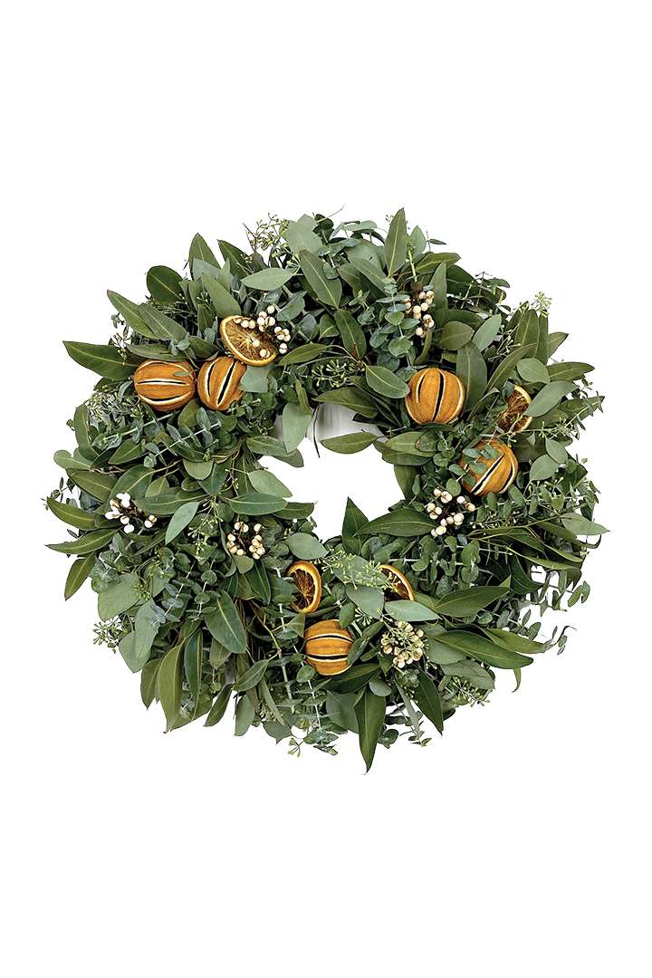 Deck the halls with a fragrant EUCALYPTUS CITRUS WREATH ($95) from family owned Creekside Farms in California. Studded with dried oranges and tallow berries, these holiday beauties are made fresh to order and shipped nationwide.