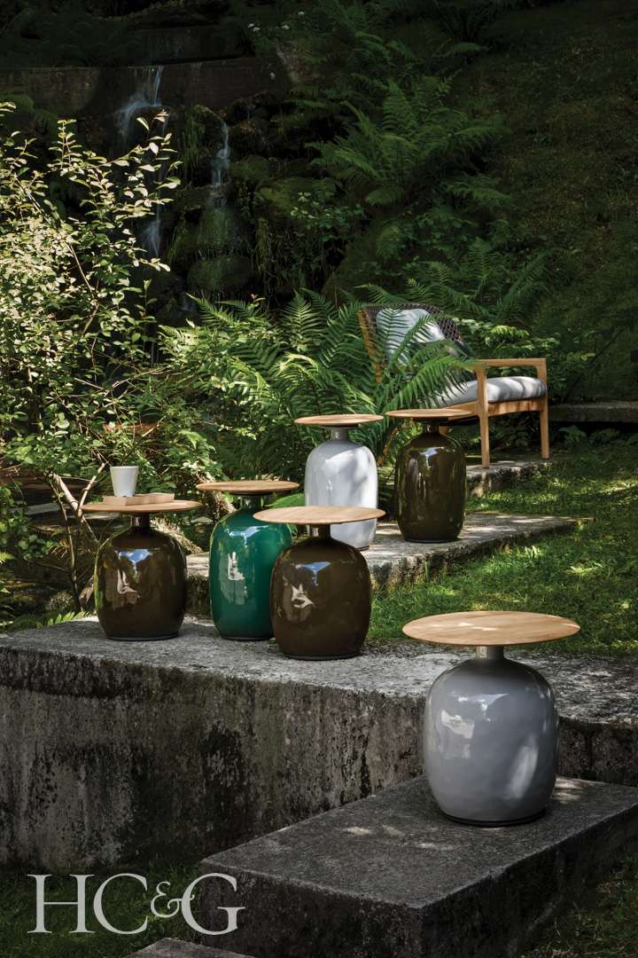 Available in two sizes, Gloster’s BLOW SIDE TABLE (from $2,055) can go practically anywhere. Its stylish glazed ceramic silhouette—available in many colors—is topped by a slim teak top.