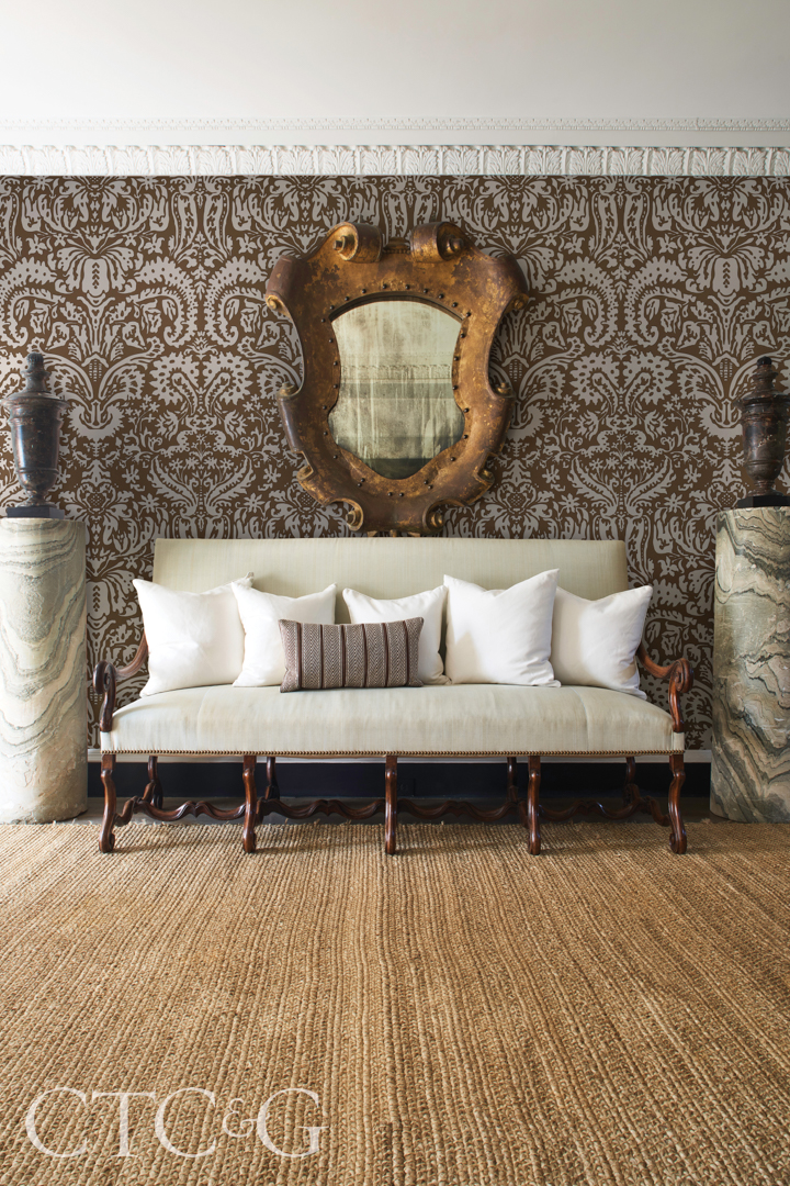 Veere Grenney has been a member of the Schumacher family for 10 years and recently introduced three brand-new patterns: a romantic floral, a versatile stripe and a Venetian-inspired damask, plus updated colorways of his most popular prints. Grenney’s diverse portfolio of textiles and wallpapers can be easily mixed and layered. His Suffolk damask is printed on linen rather than silk to lend “a more modern/contemporary look.” He notes, “It is reminiscent of the work of Baldwin or Hicks in the ’60s, especially in chocolate brown.”