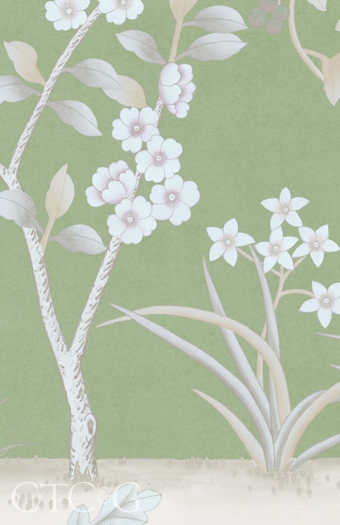 wallcoverings with the Mural Source exude stately elegance in pretty pastels, depicting