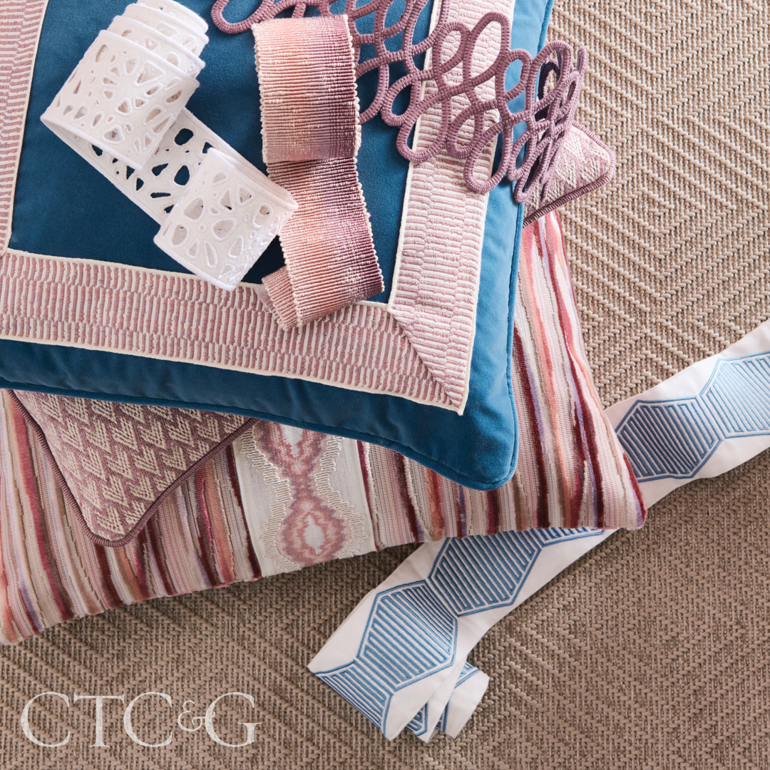 Mark D. Sikes has always incorporated trims into his projects, so he was thrilled to develop tailored cords, borders and fringes for Samuel & Sons. “To now have my own collection with Samuel & Sons is a dream come true,” says Sikes. The Orange Hill Farm assemblage is composed of three sub-collections, City, Coast and Country, based on recognizable motifs—the rosette, the stripe and the check. “We hope designers are as excited to use it in their projects as we are.”