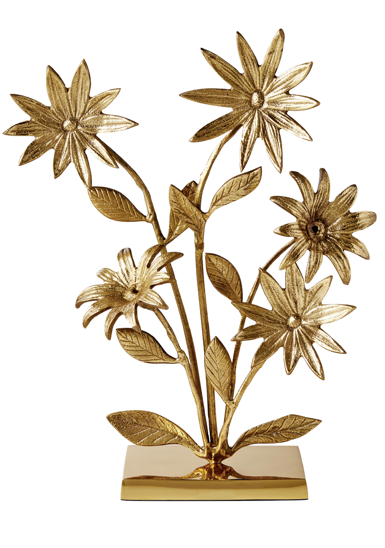 No need to worry that these flowers will ever fade. Crafted from solid brass, the Daisy sculpture elevates a bedside table or bookcase. $175, at Aerin, 83 Main St., Southampton, 631-353-3773.