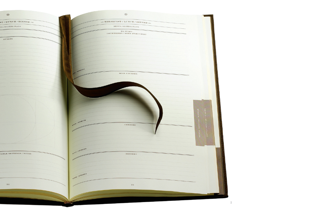Mrs. John L. Strong’s linen-covered Entertaining Journal keeps track of every last detail, from the menu to the seating plan. $125, 699 Madison Ave., NYC, 212-838-3775.