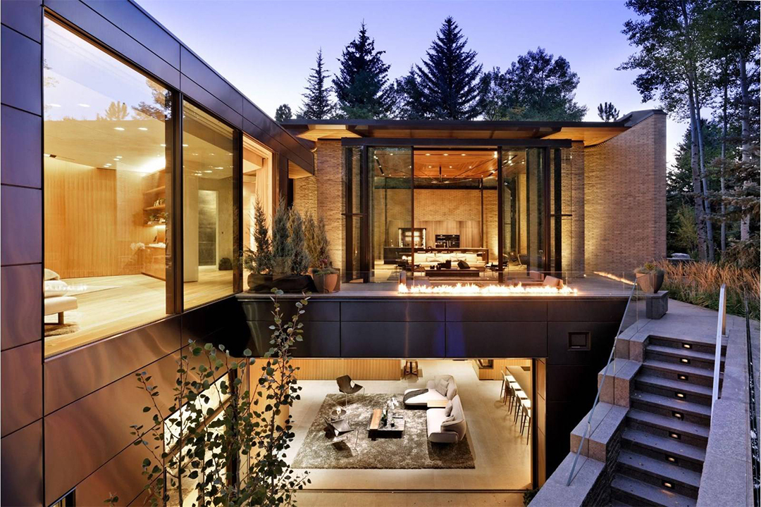 Clean lines and mountain views make this modern Aspen mansion a sultry haven. Après-ski in the soaring open spaces or cook with the one you love for a sumptuous night in. Relaxing by the home’s sleek outdoor fireplaces as it snows and the stars twinkle above will never get old. When summer finally comes, enjoy the home’s serene sunken garden bathed in sunshine or frolic through fields of Colorado wildflowers. It truly is a scene out of a movie, and its listed for a cool $29 million.
