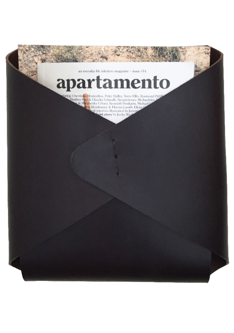 Working out of her Northern California studio, Alice Tacheny creates crisp furniture and accessories for the home. The Tasche Wall Pocket’s envelope shape is folded latigo leather stitched with waxed twine. $120, alicetacheny.com.