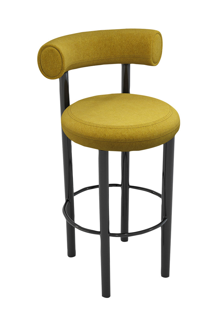 Tom Dixon’s beloved Fat silhouette is translated into a 30-inch bar stool, wearing a wool Kvadrat fabric, Melange Nap, with black steel legs. $1,595.