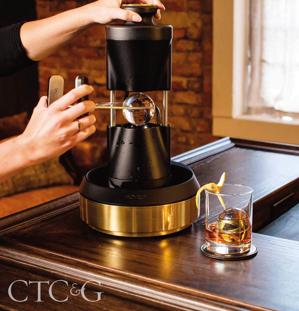Calling all spirits afficionados—for an elevated cocktail experience at home, Monogram’s Forge ice press creates seamless, clear ice spheres in less than 60 seconds. The crafted, slow-melting spheres add a quick chill to spirits without diluting the flavor.