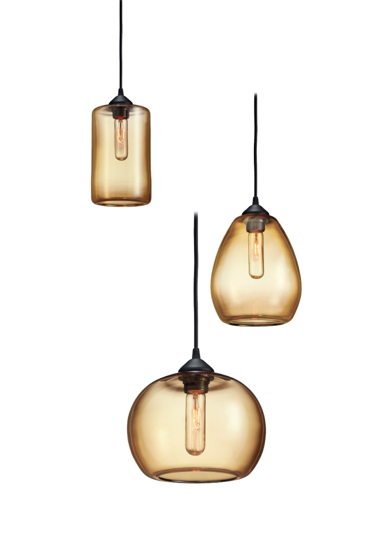 Hennepin Made’s hand-blown glass Sky pendants in Honey bring a warm glow to any interior. $1,047, through Room & Board.