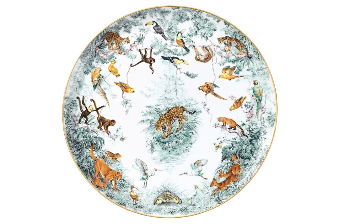 The illustrations of late naturalist and artist Robert Dallet have been translated to the table in Hermès new line, Carnets d’Equateur. The porcelain collection is adorned with images that capture dozens of creatures in meticulous detail. $2,140.