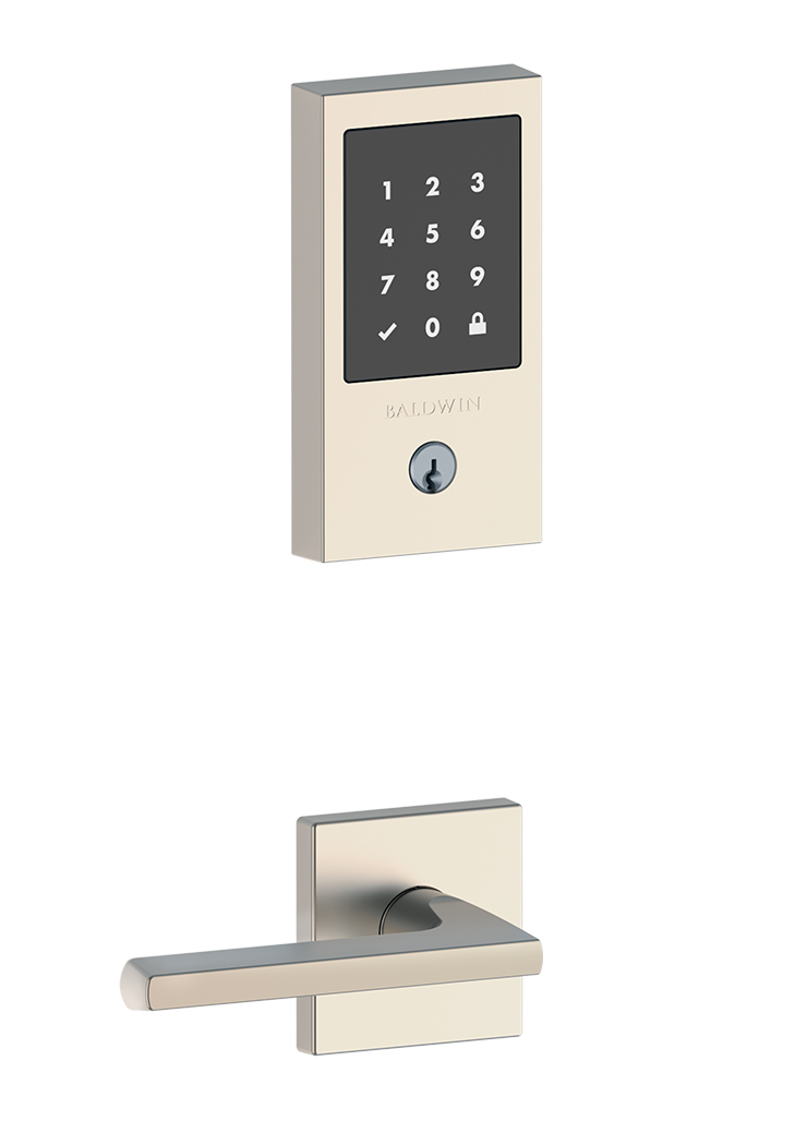 Baldwin’s Minneapolis TouchScreen deadbolt with a Lakeshore lever is one of five attractive styles providing electronic security. Activate the SecureScreen technology with a touch of a finger and enter your four- to eight-digit code for easy unlocking. Price upon request, available through Ring’s End, Darien, ringsend.com, baldwinhardware.com.