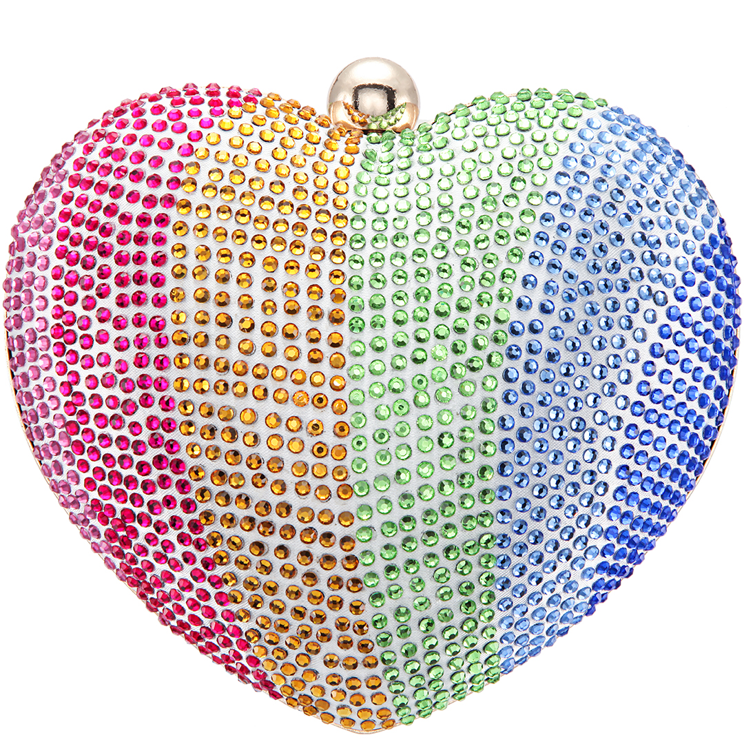 Sparkle on Galentine’s Day and beyond with this shimmery crystal embellished heart from Amoire. Available in gold, silver and rainbow, this special piece can be adorned as a clutch or with its flat curb chain. Available for $65 at NinaShoes.
