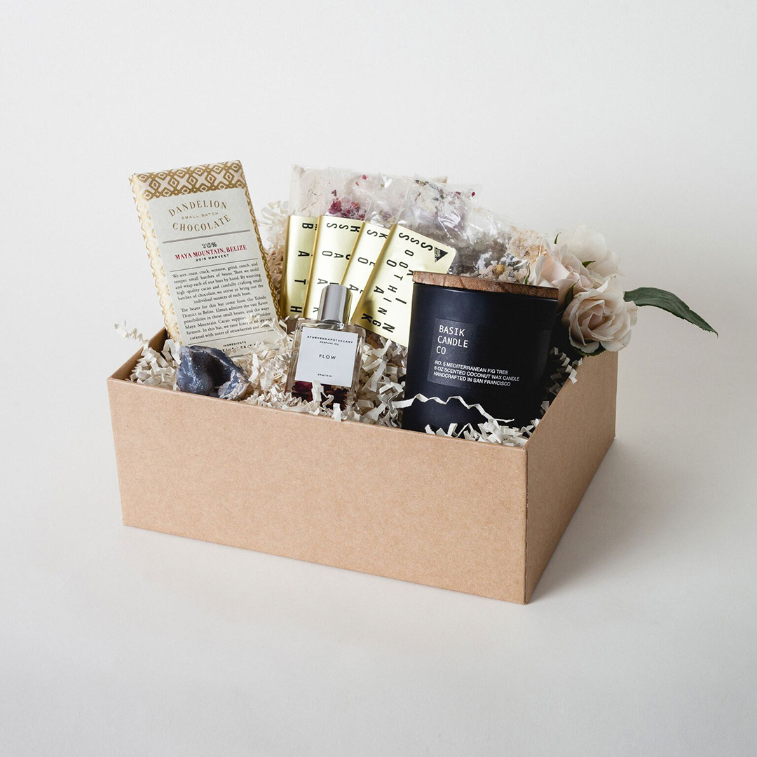 Another fun bundle idea comes from Bestowe with their Bestowe Gifting Body, Mind, & Spirit Gift Box. This online gift company that creates effortless, thoughtful gift boxes featuring small-batch, artisan-made products featuring this bundle filled with a botanical soak set, artisanal chocolate, perfume oil, geode, and a candle. Available for $130 at Bestowe.