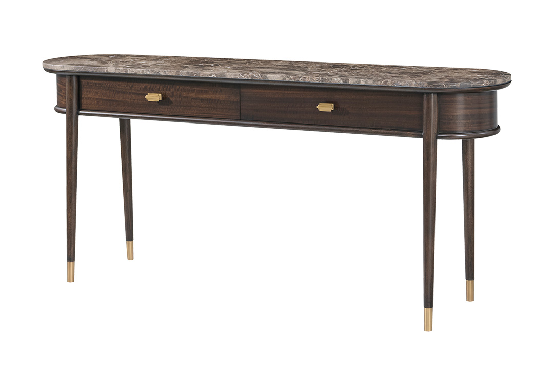 Wrapped in a rich leather with intricate stitching, the Gabe accent table from Regina Andrew adds a handsome note to a room. $810.