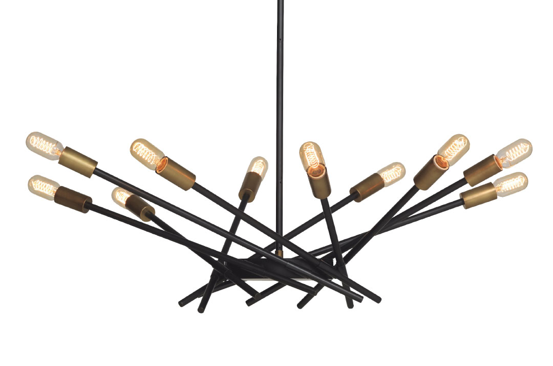 The Kensey chandelier from Mitchell Gold + Bob Williams features adjustable arms, which can be fashioned up or down for a variety of looks, crafted from a mix of antique bronze and antique brass. Greenwich, 203-661-4480, mgbwhome.com.