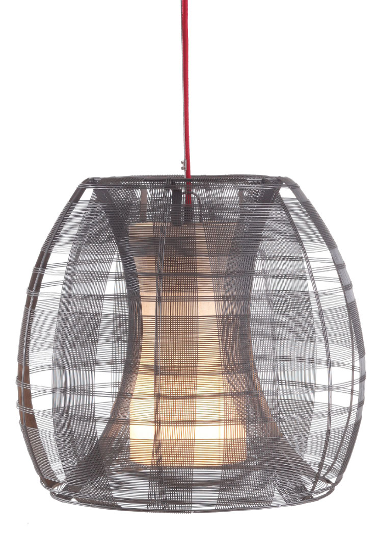 Using thin, malleable metal wires, Schema’s Curious pendant lamp forms the patterned spherical exterior shown. A funnel-shaped hollow is located in the center for bulb placement. Through Kenneth Cobonpue, NYC, 888-889-9005, kennethcobonpue.com, schemaproduct.com.