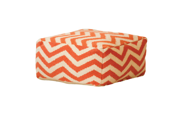 Warm & Inviting by Libby Langdon for walmart.com Finley handmade chevron wool pouf in Poppy, 24” x 24” Square. 212.501.0785 | libbylangdon.com