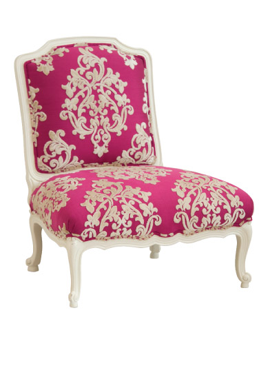 White and fuchsia French Slipper chair. 631.425.1846 | beachglassinteriordesigns.com