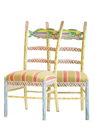 A matching pair of carved, handpainted and upholstered chairs. 516.526.0670