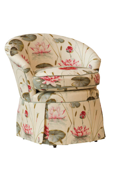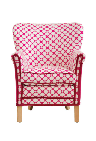 Upholstered club chair in cheerful pink fabric. 631.726.7300 | mableyhandler.com