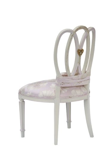 Fully-upholstered and shirted arm chair with fabric collaboration donated by Peter Fasano. Fabric printed with pink and red hearts on chenille ground. 203.259.7636 | rjforehand.com