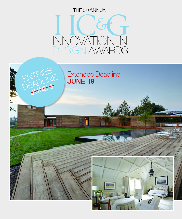 Entries must be received by June 5th, 2015. Winners will be announced at the HC&G 2015 Innovation in Design Awards gala in August. Winning projects will be featured in HC&G’s September/October 2015 issue and online.