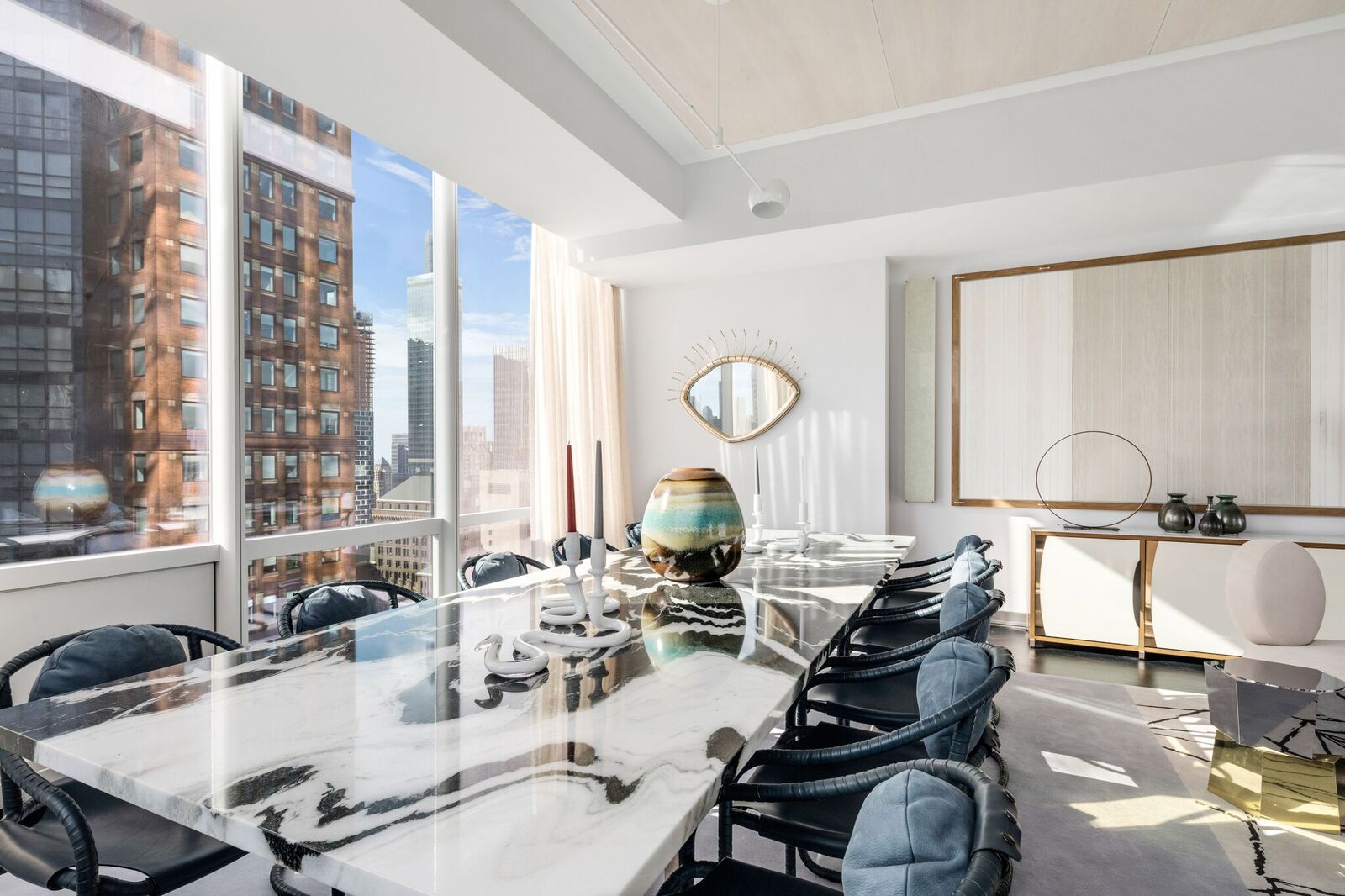 Tucked into the upper floors at Billionaire’s row icon One57 are two additional examples. Extell Development Company specifically planned an exquisite pair of two duplex units named the Spring Garden and Winter Garden residences, the building’s only homes with private outdoor space. The Spring Garden unit, which is being marketed by celebrity broker Ryan Serhant, boasts a 671-foot solarium and terrace overlooking iconic Central Park as well as a 43-foot-long great room. The home was impeccably outfitted by Katherine Newman Design, famous for crafting the interiors of some of the Upper East Side’s most luxurious townhomes.
