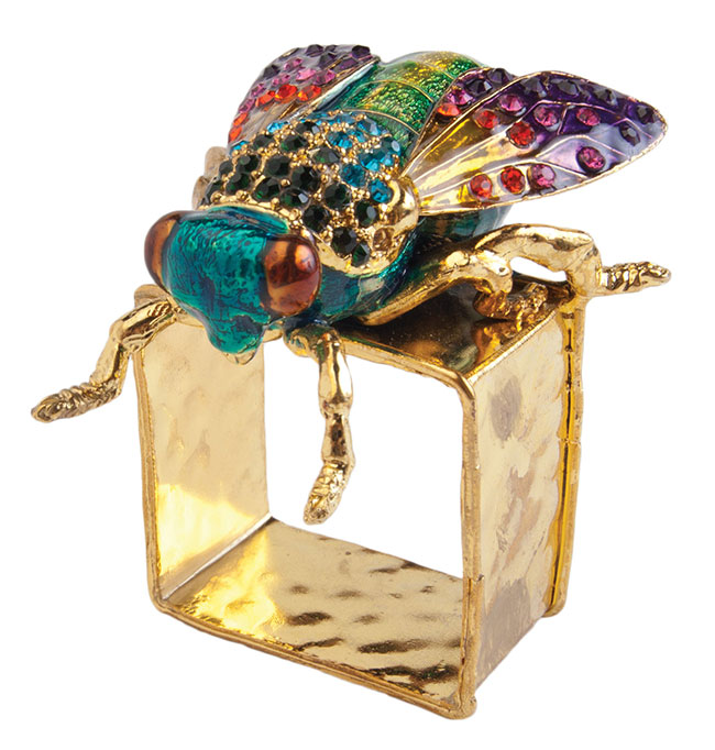 Decked out in multicolored rhinestones, Wainscott-based designer Kim Seybert’s Shoo Fly napkin rings will dress up her table and never spoil the soup. $174 for a set of 4, at Silver Spoons, 135 Main St., Westhampton Beach, 718-372-4362.