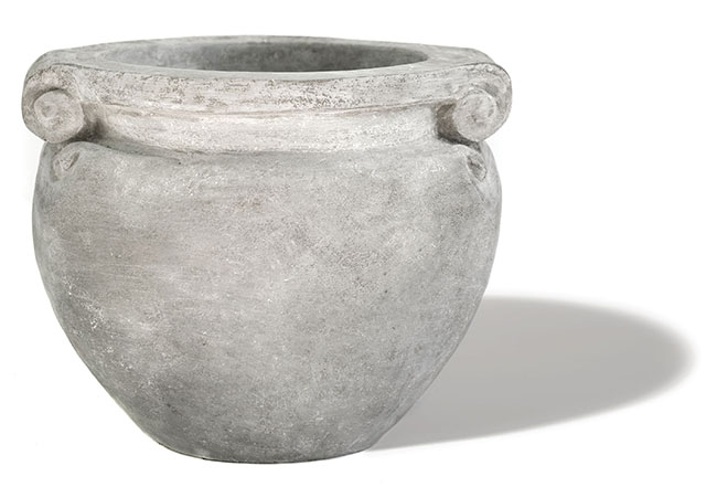 Gertrude Jekyll, renowned writer and gardener created this original Mediterranean-style olive jar. Made of marble, rock and resin, it is lightweight and weather resistant for year-round use. Shown here in Lead Grey, size: 19”h x 21”w, $450. Made in New York City. Pennoyer Newman I 212.839.0500.
