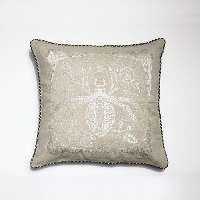 The embroidered natural linen Spider and Ladybug pillow by Klaus Haapaniemi brings a cool shimmer to hot summer days. $158, at Tiina the Store, 216 Main St., Amagansett, 631-267-6200.