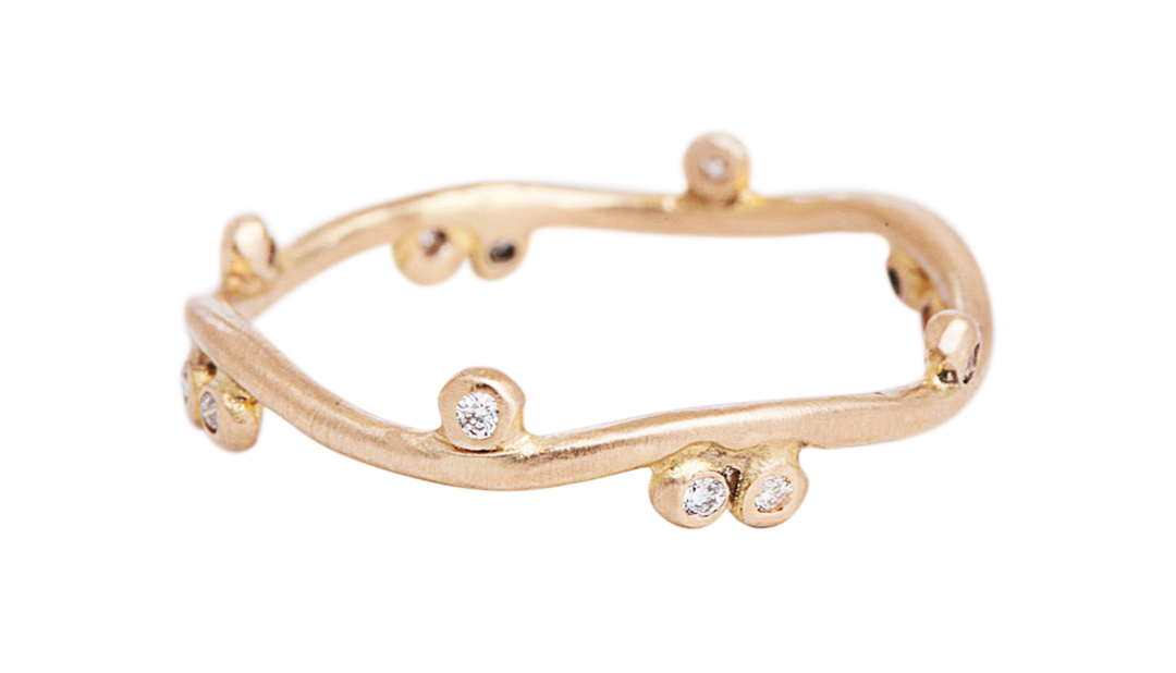 Charlotte Wendes 18k-yellow-gold mini-bud ring with diamonds, $1,430, at Love Adorned, 269 Elizabeth St., NYC, 212-431-5683, loveadorned.com.