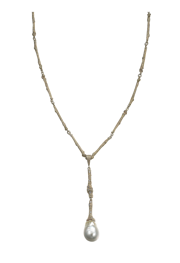 K. Brunini 18k-yellow-gold Medium Twig necklace with diamonds and South Sea pearl, $6,300, at Greenwich St. Jewelers, 64 Trinity Pl., NYC, 212-964-7592, greenwichjewelers.com, kbrunini.com.