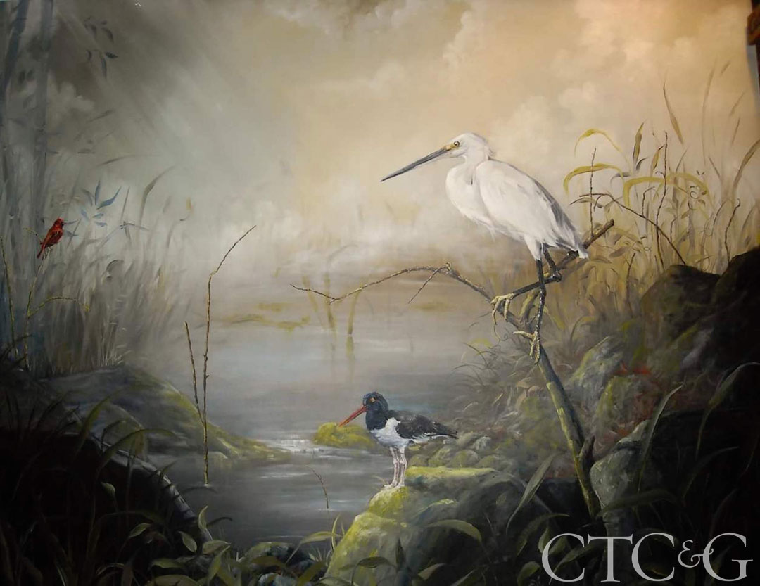 What is the most typical subject matter requested? A landscape of some sort. Most of my murals are based on nature, so I typically include the nature outside the room’s window into the mural. I prefer to create Audubon-inspired landscapes; something that feels very 19th century or early 20th century and has classic elegance to it.