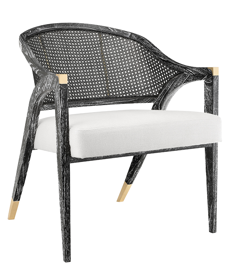 The mahogany Edward lounge chair includes a hand-woven rattan back and polished brass detailing. Available in black (shown) and natural finishes. $1,049, at Bungalow 5, 45 E. 20th St., 2nd fl., NYC, 212-947-1500, bungalow5.com.