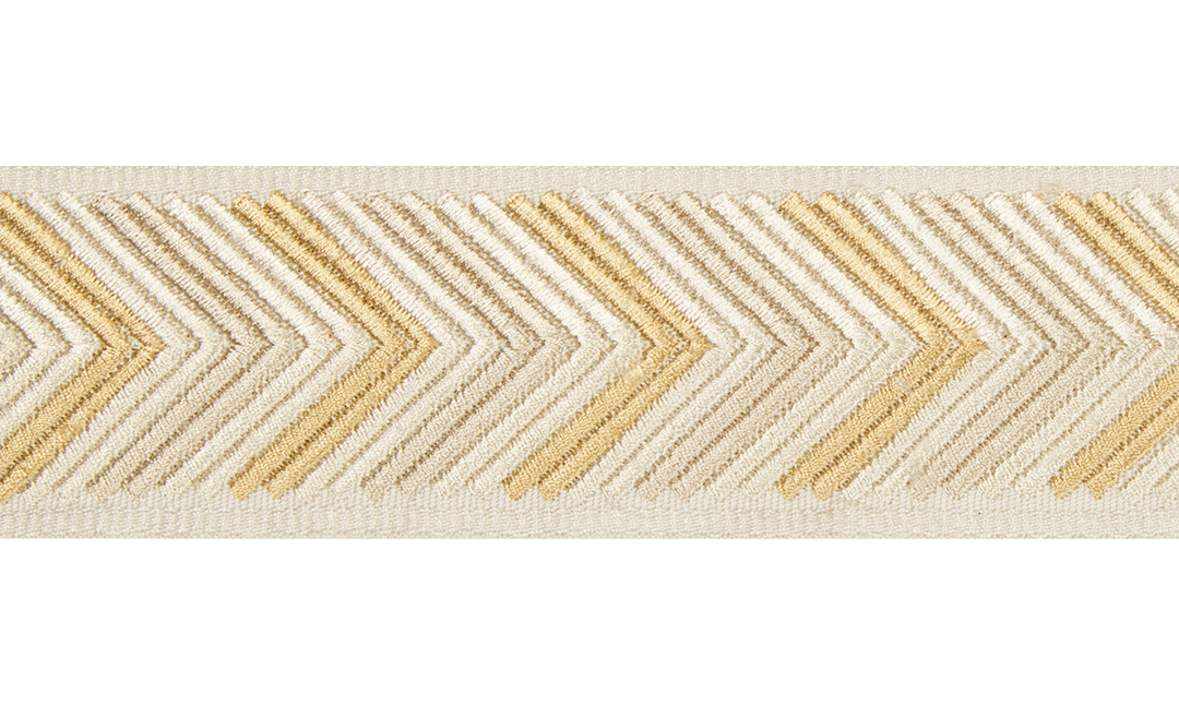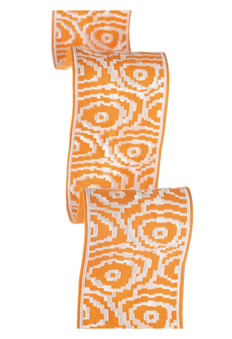 Emery embroidered border, available in nine colorways (shown: Clementine), at Samuel & Sons, 983 Third Ave., NYC, 212-704-8000, samuelandsons.com.